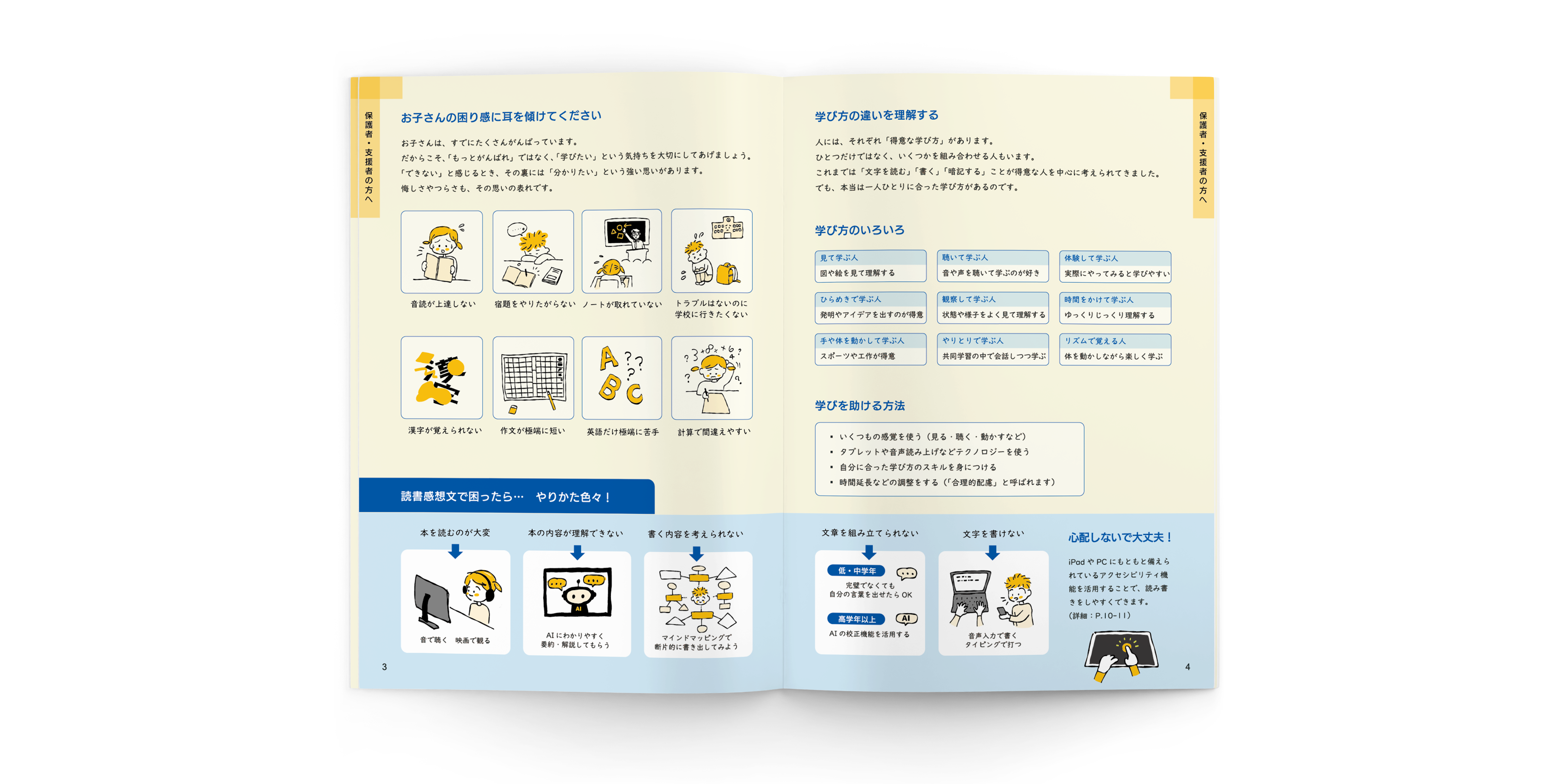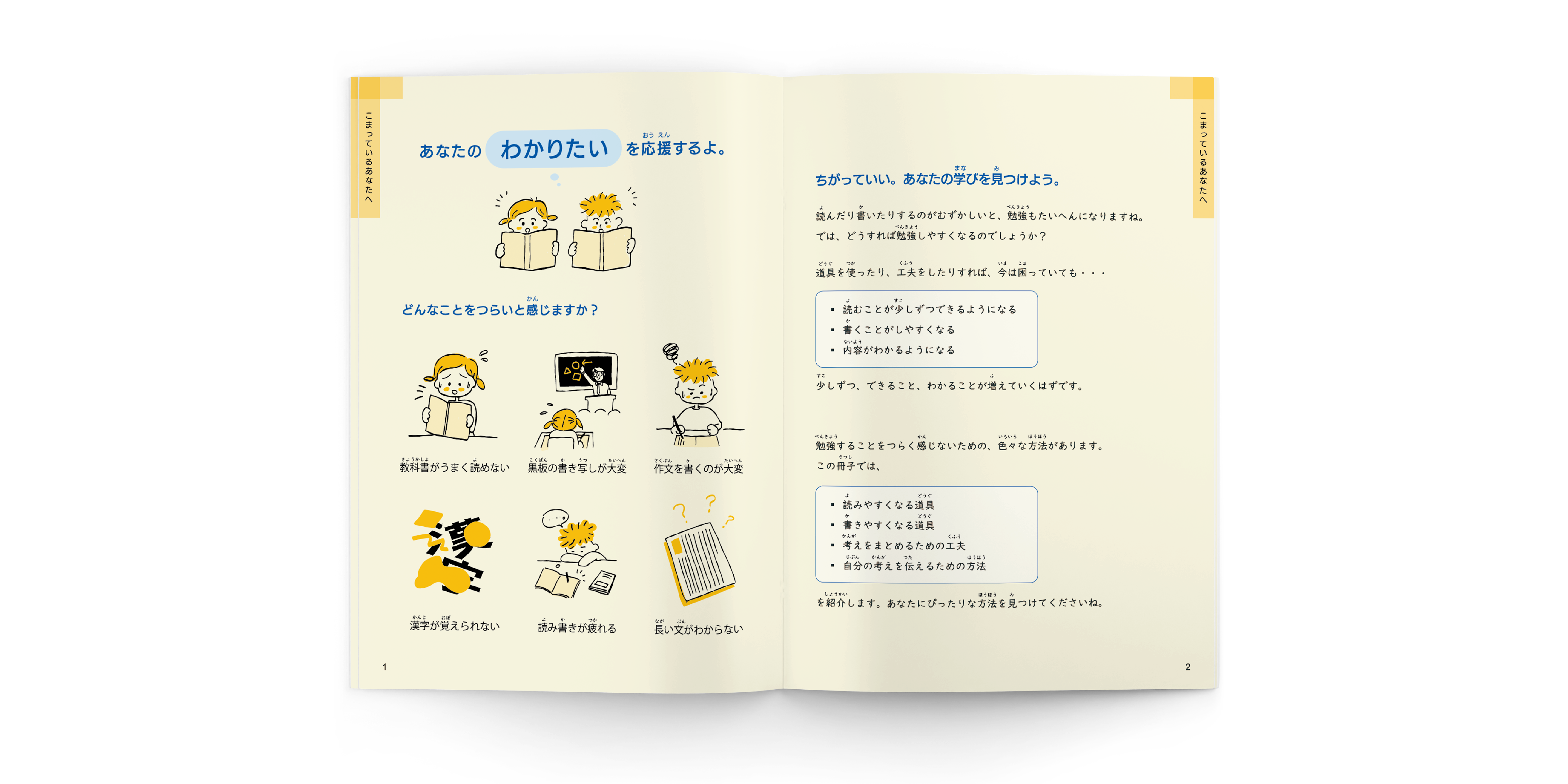 ディスレクシアの子どものための支援ガイドBookのデザイン・イラスト制作に携わらせていただきました。